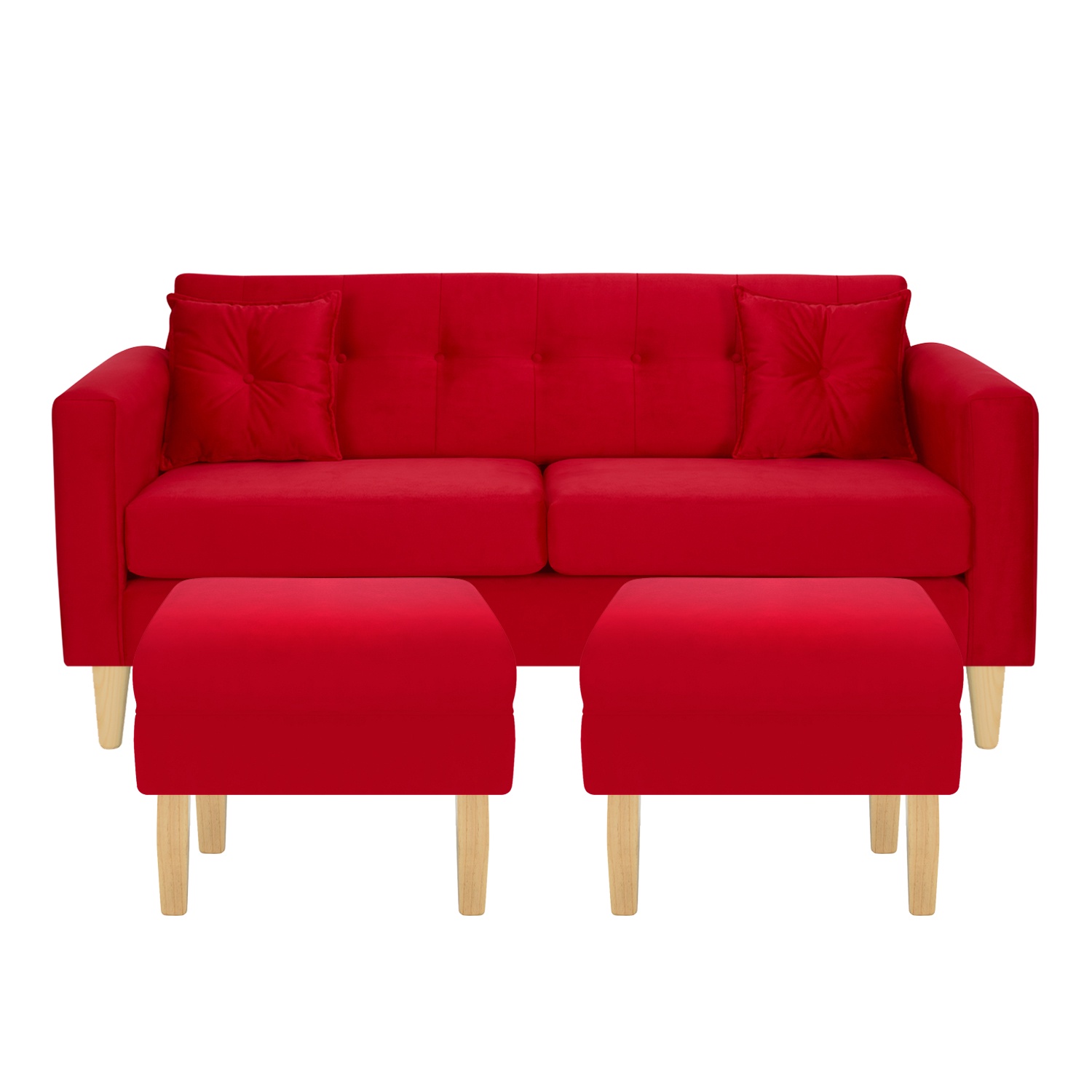 Bodevir - Sofa New Retro 3C + 2 Pouf Felpa 05 Rojo | Lider Electrohogar