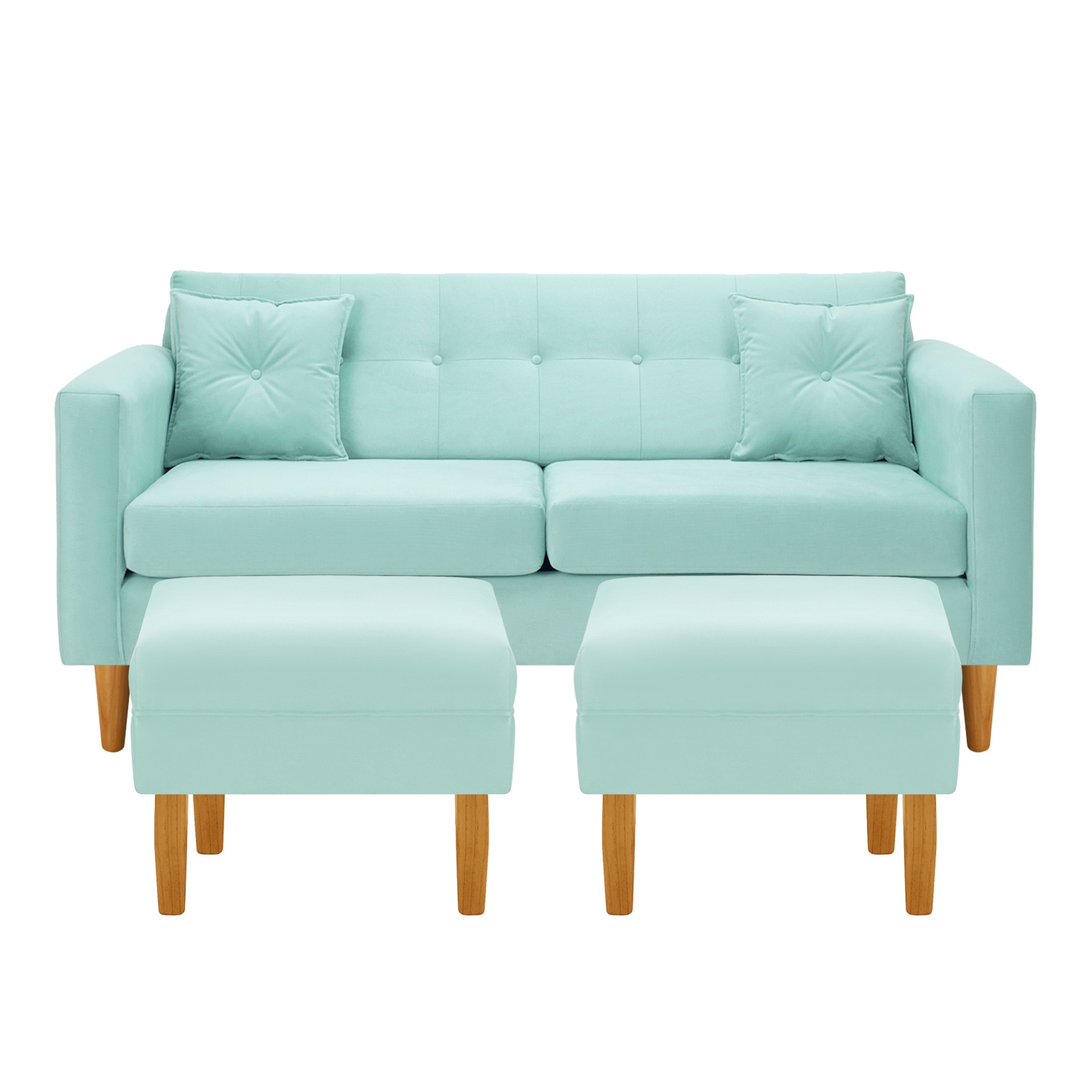Bodevir - Sofa New Retro 3C + 2 Pouf Felpa 04 Verde Agua | Lider Electrohogar