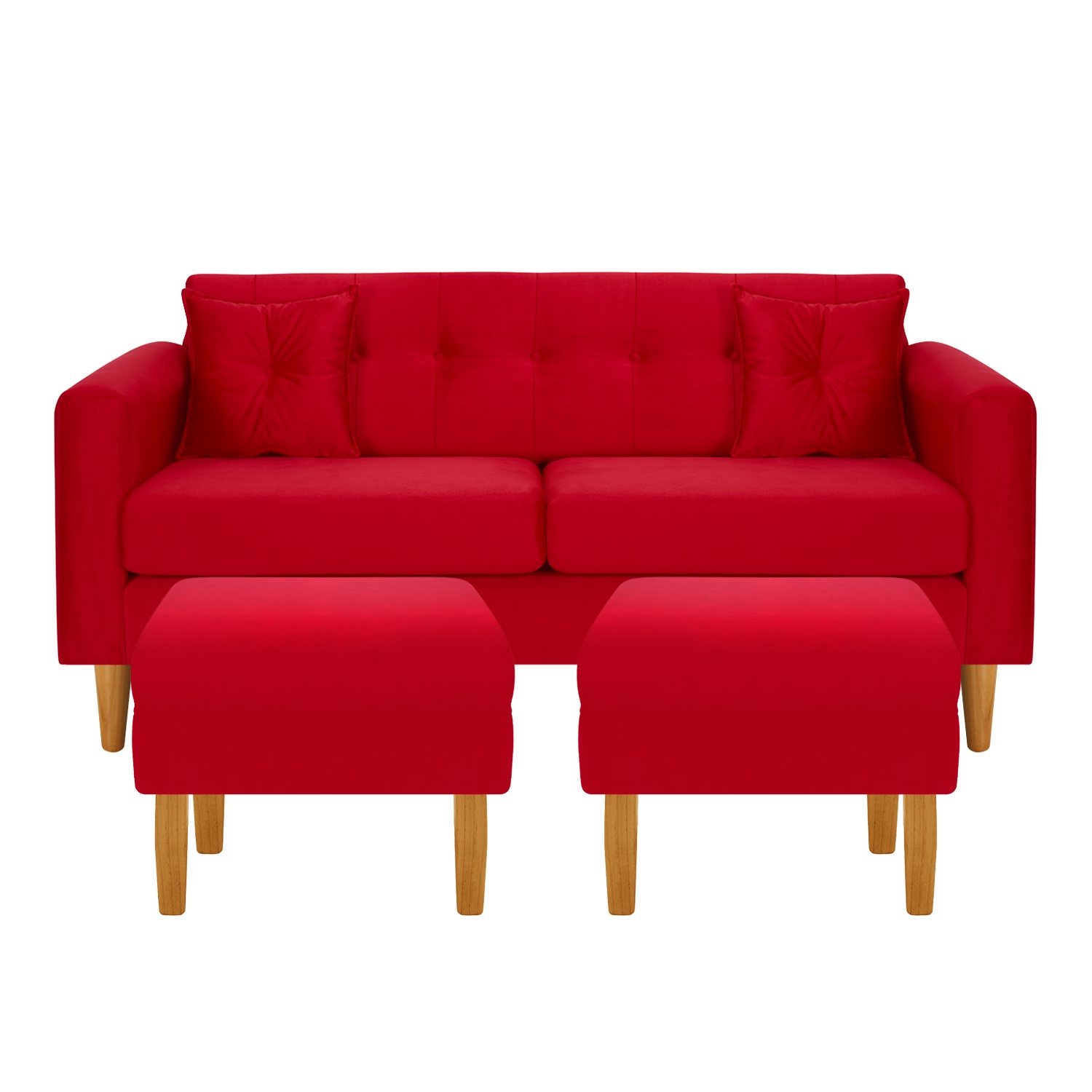 Bodevir - Sofa New Retro 3C + 2 Pouf Felpa 04 Rojo | Lider Electrohogar
