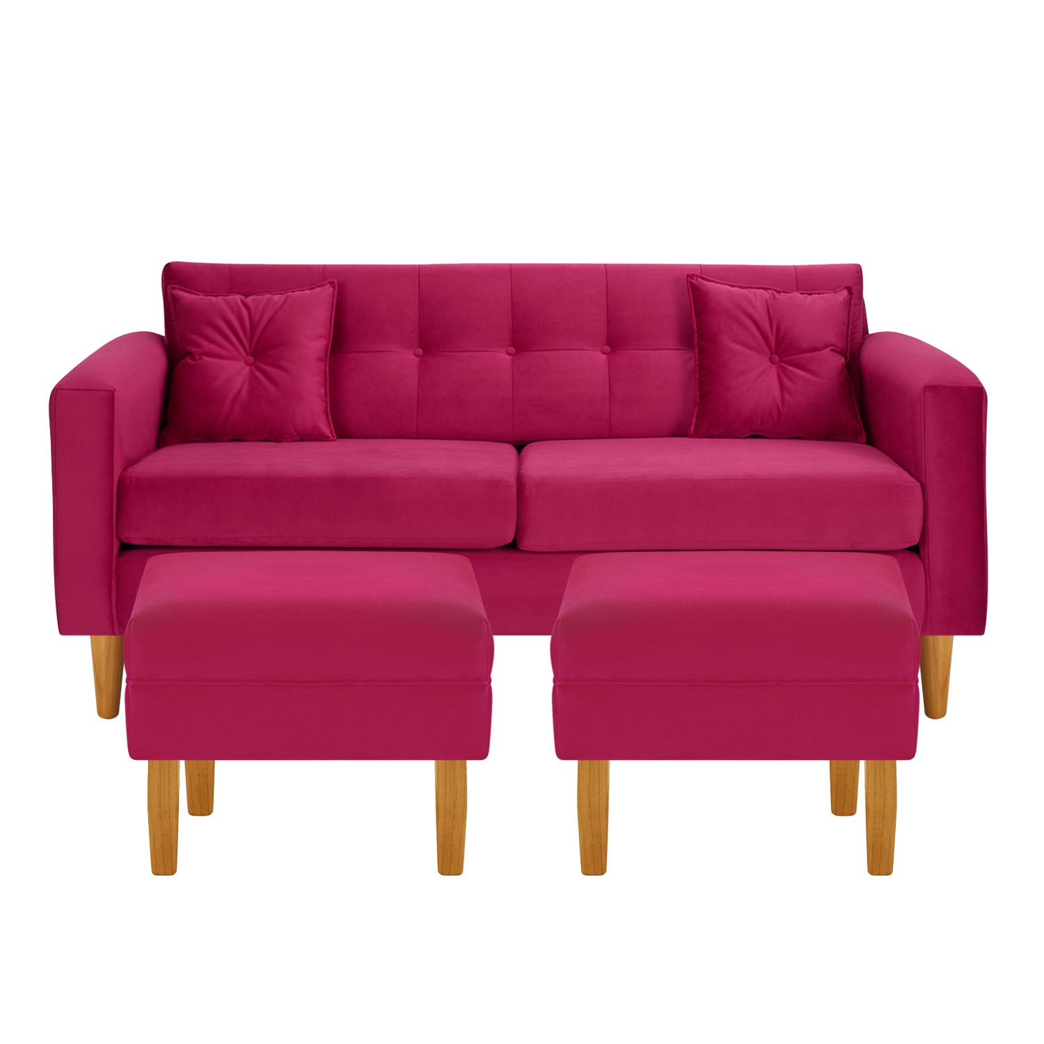 Bodevir - Sofa New Retro 3C + 2 Pouf Felpa 04 Burdeo | Lider Electrohogar