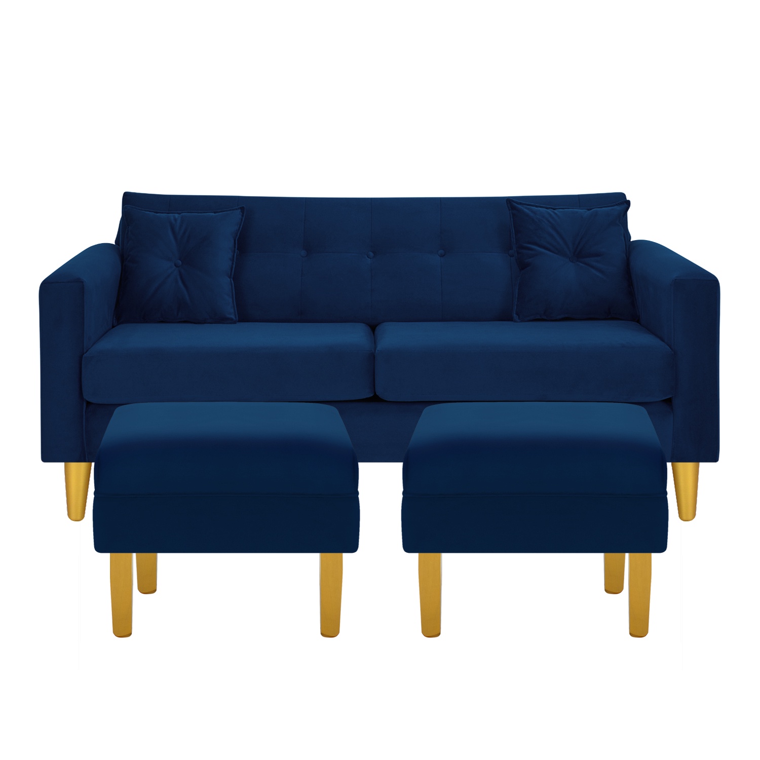 Bodevir - Sofa New Retro 3C + 2 Pouf Felpa 01 Azul Marino | Lider Electrohogar