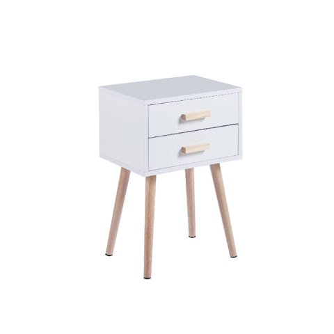 Velador Doble Cajón Blanco Eco Cuero Muebles Rimar