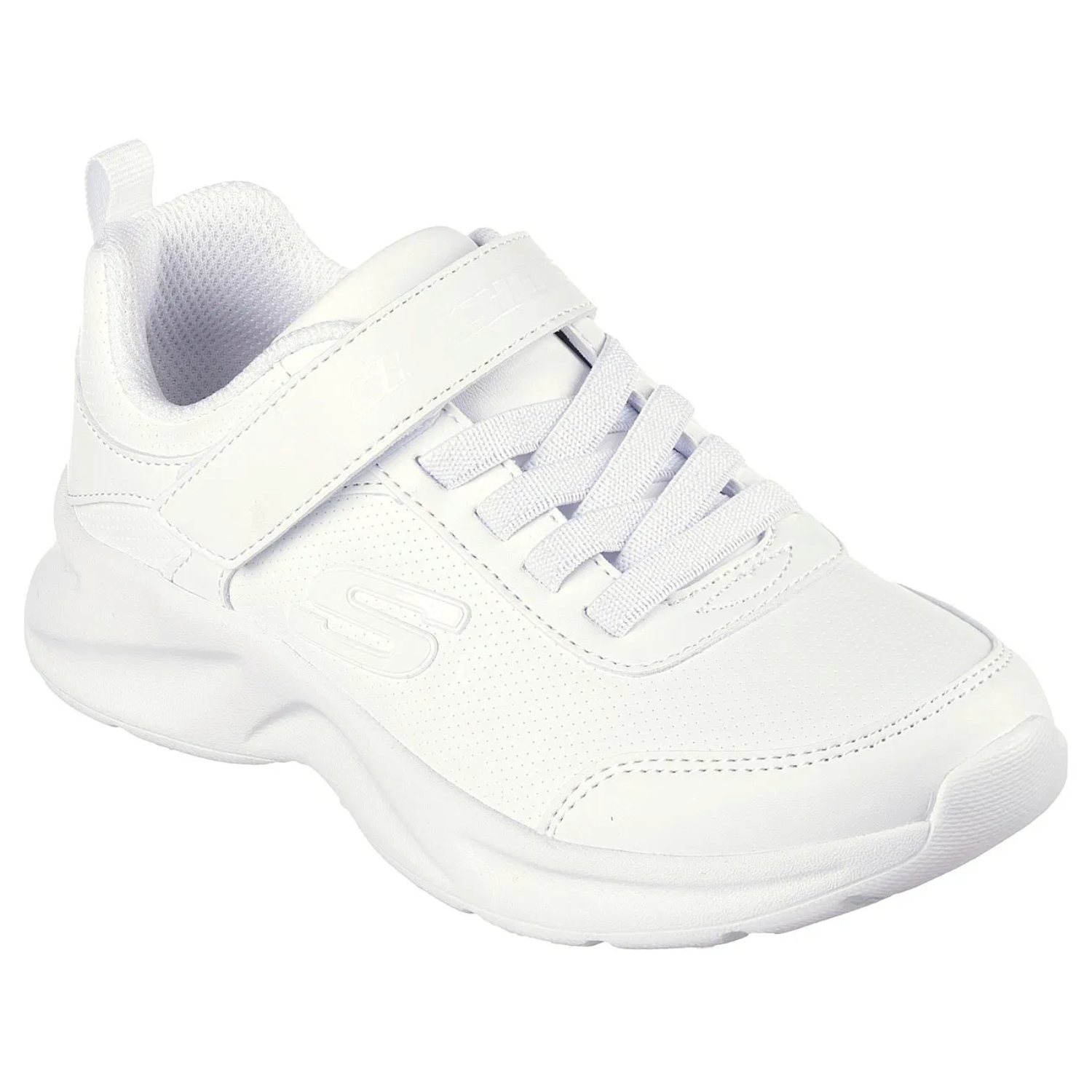 Las zapatillas skechers escolar dynamatic en color blanco ofrecen un diseño fresco y cómodo, perfecto para el día a día. confeccionadas en materiales ligeros y resistentes, incluyen una plantilla acolchada que proporciona soporte durante largas jornadas. su estilo clásico y versátil se adapta perfectamente a uniformes escolares, combinando practicidad y durabilidad en cada paso.