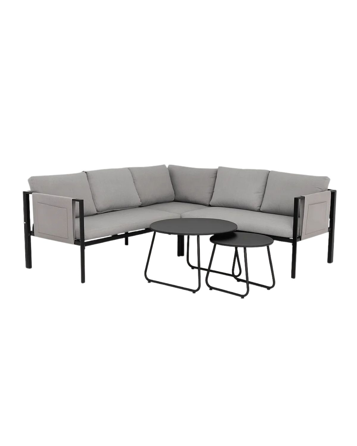 Set de terraza esquinero con mesas auxiliares este elegante set de terraza modular combina comodidad estilo y funcionalidad en un diseño contemporáneo ideal para disfrutar al aire libre