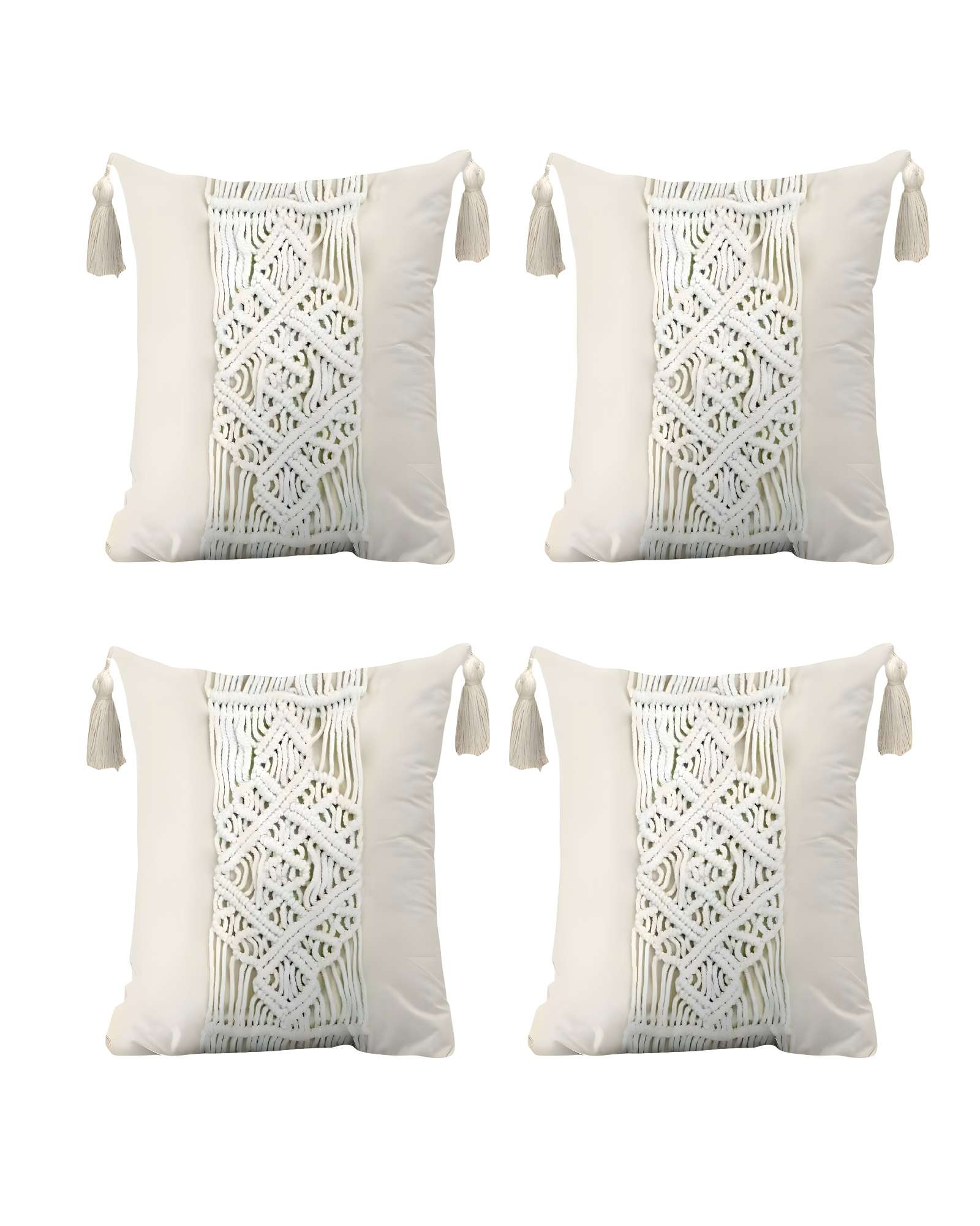 Pack de 4 fundas de cojin estilo bohemio 45x45 cm blanco 03
