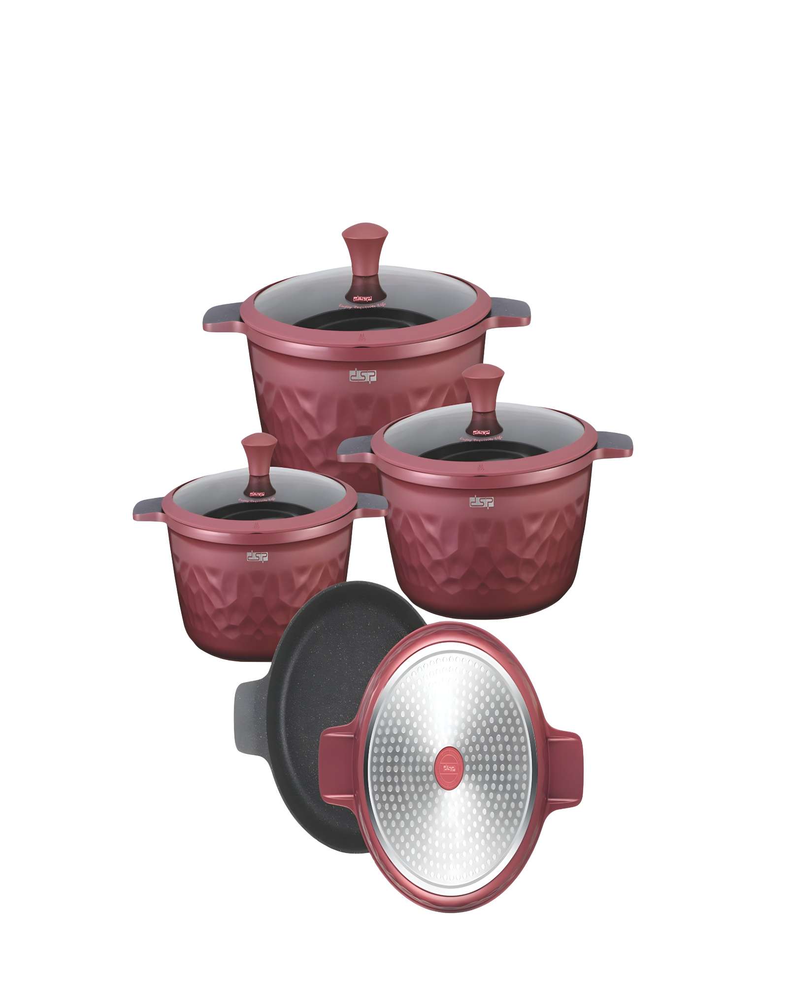 Genérico - Set De Ollas Keep, Antiadherente, 7 Piezas, Color Coral