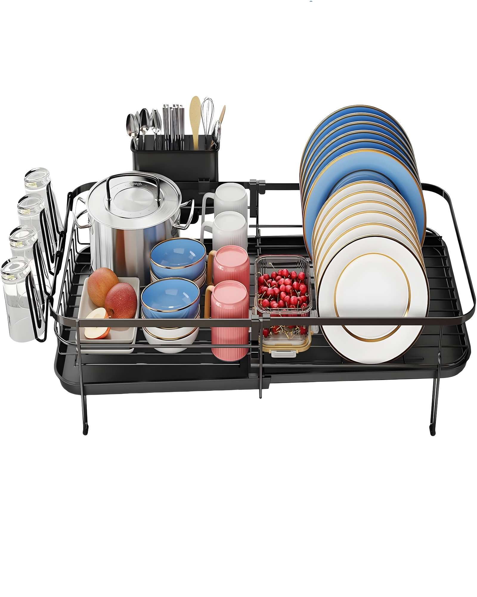 Genérico - Escurridor Plegable De Platos Expansible Para Cocina Negra