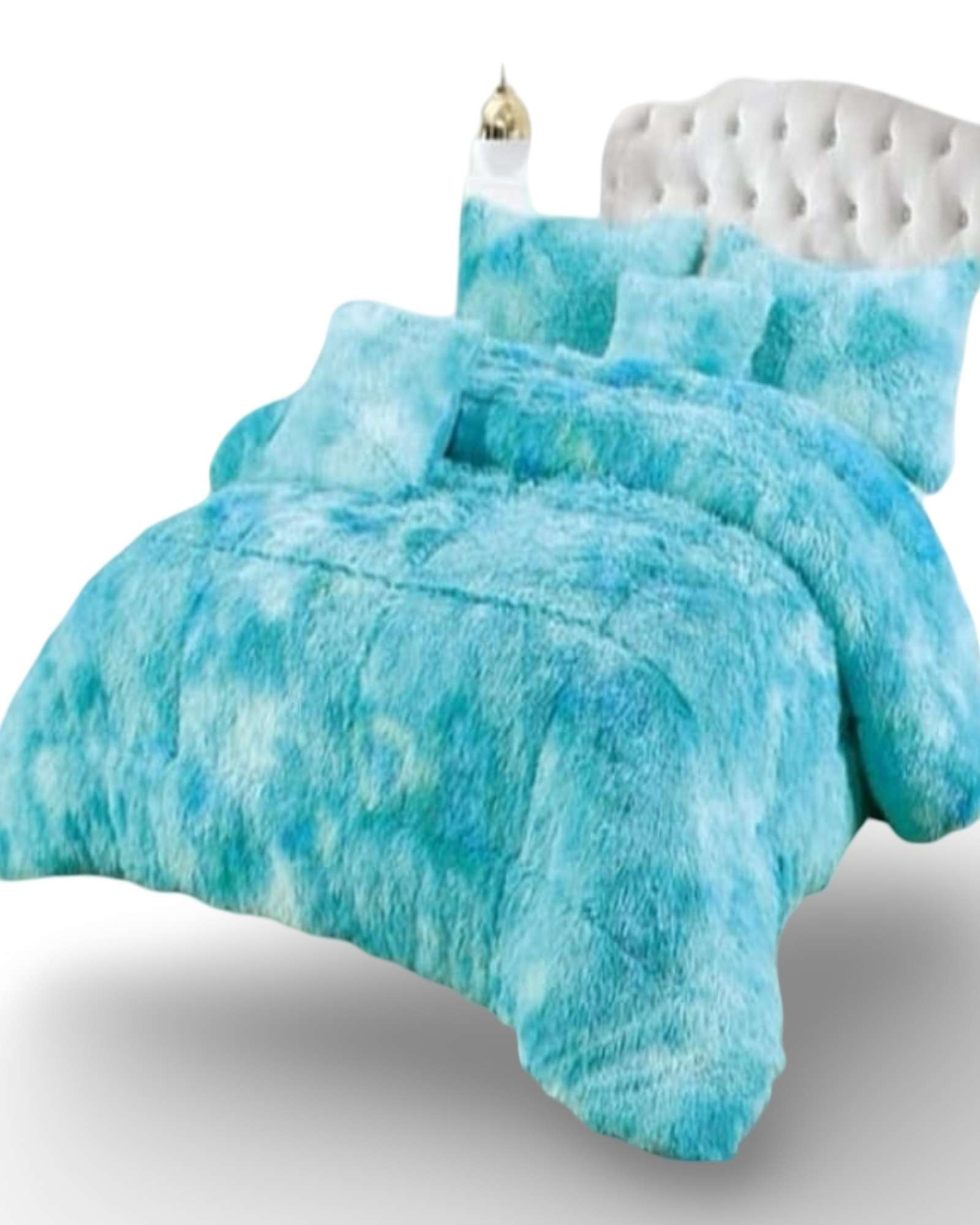 Gran Sol - Plumón Cubrecama Chiporro Peludo Grueso 2 Plazas Celeste Jaspeado