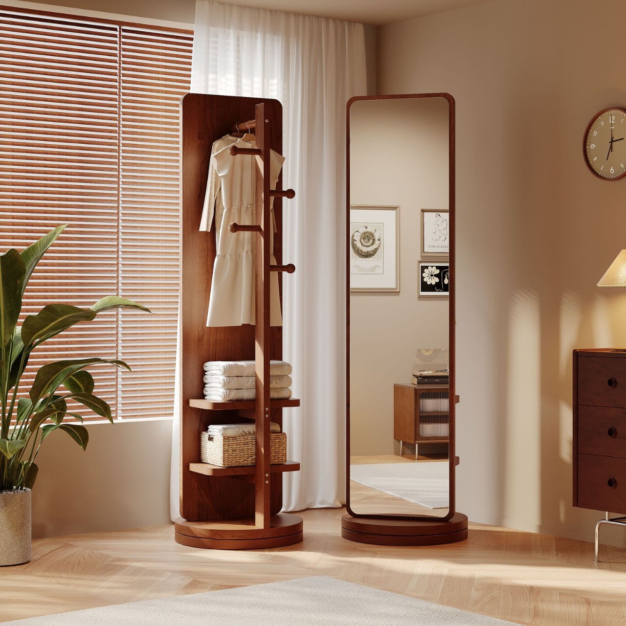 El espejo de cuerpo completo con perchero es una solución 2 en 1 ideal para dormitorios y vestidores modernos.