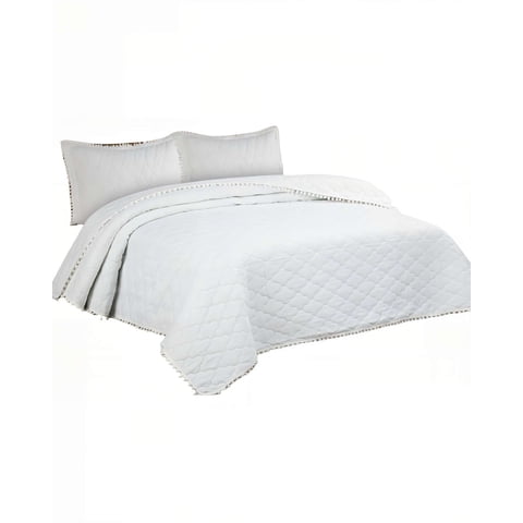Genérico - Cubrecamas Con Bordes De Pompon 1 5 Plaza Color Blanco | Lider Electrohogar