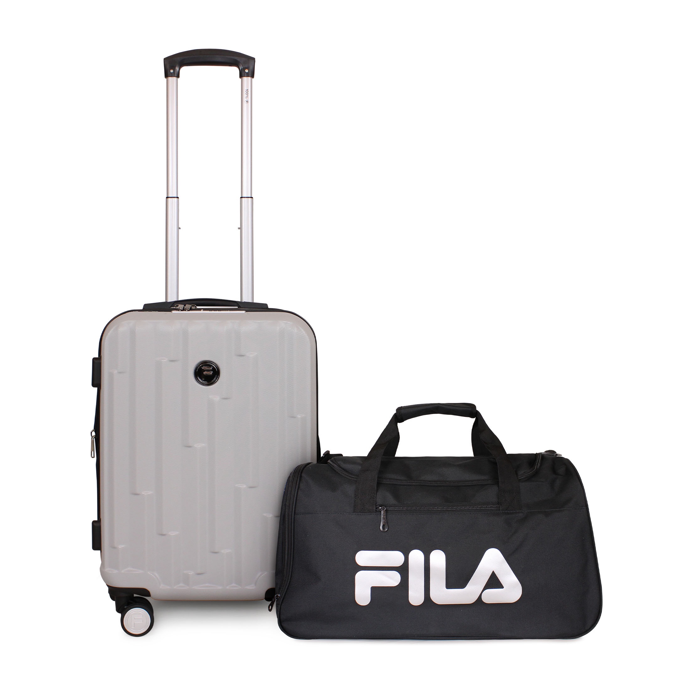 F - Fila - Pack Maleta Cabina S (10 Kg) Flip Gris + Bolso Verona S Silver-Negro | Lider Electrohogar