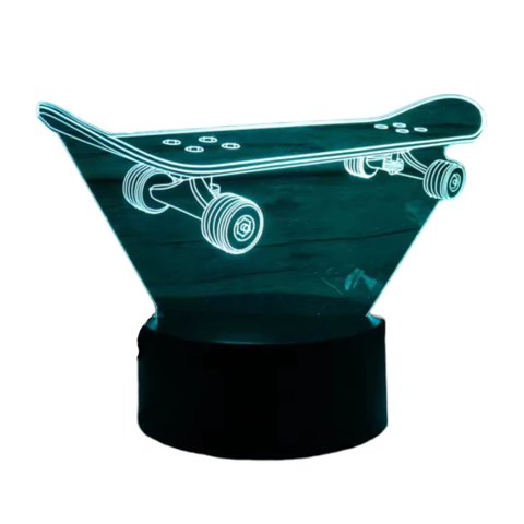 Lelumania - Lampara Ilusion 3D Niño Skate De 7 Colores, Base Touch
