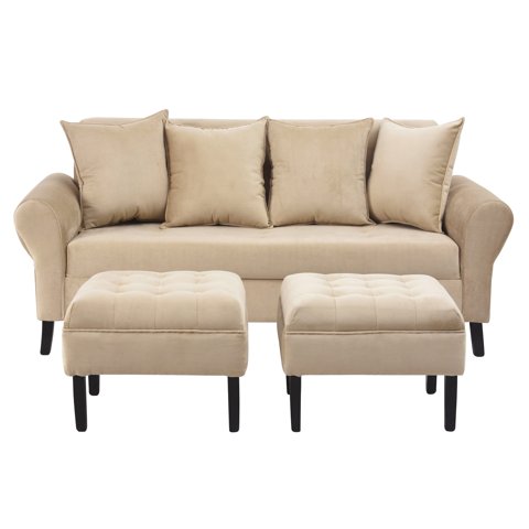 Bodevir - Sofa Lua 3C + 2 Pouf Felpa 20 Beige | Lider Electrohogar