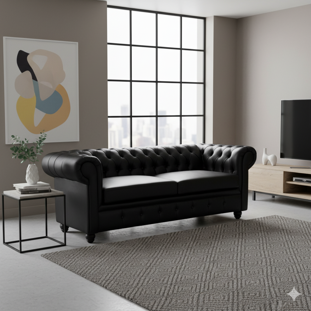Sc Decohome - Sofa 3 Cuerpos Chester Luxe Negro | Lider Electrohogar