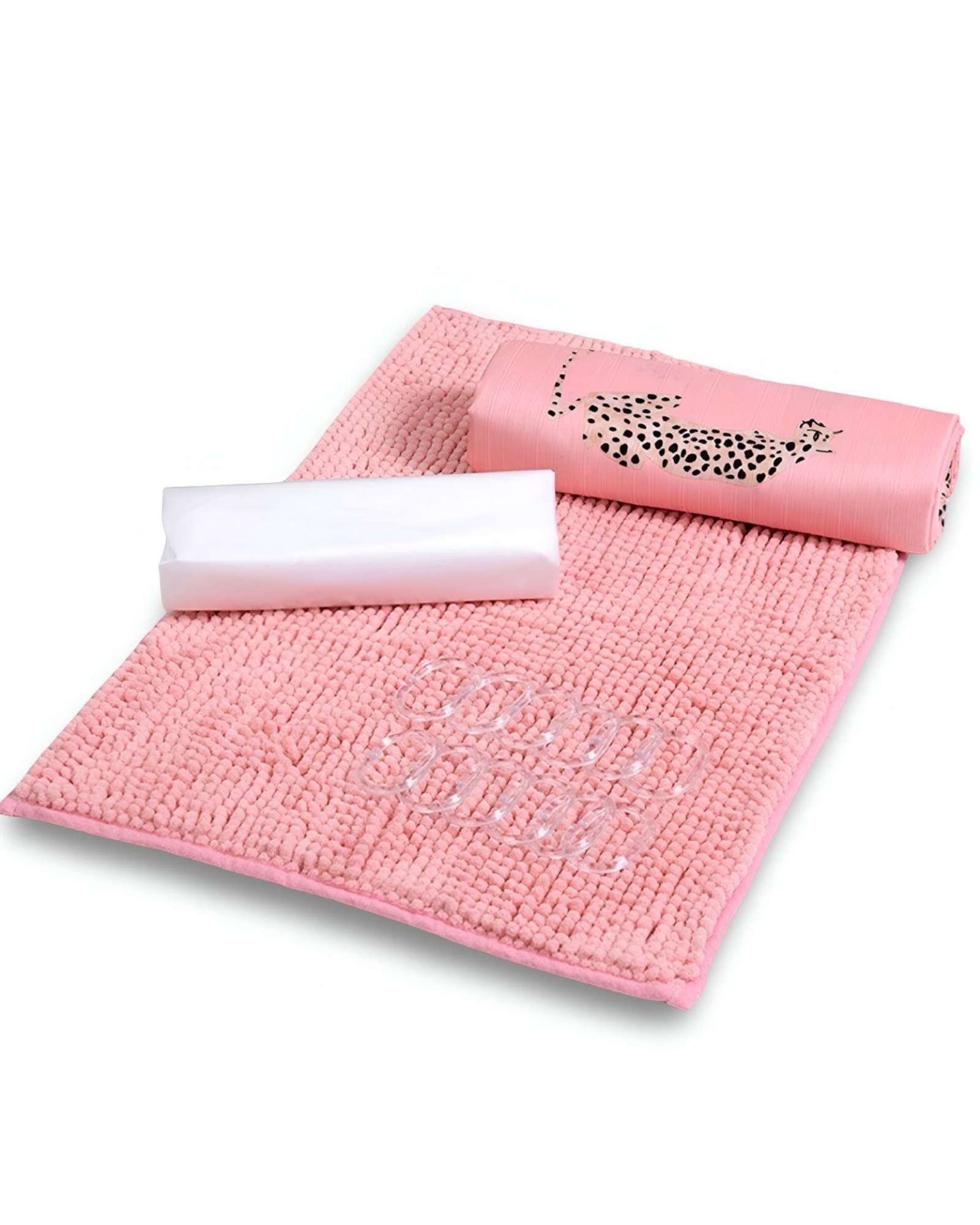 Juego de baño en caja 4 piezas cortina con alfombra mashini