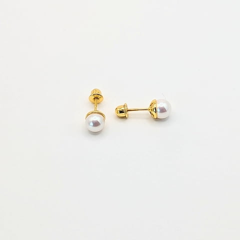 Tiana Joyas - Arito Perla Abridor Recién Nacido De Perla Cultivada De 4Mm En Oro 18K