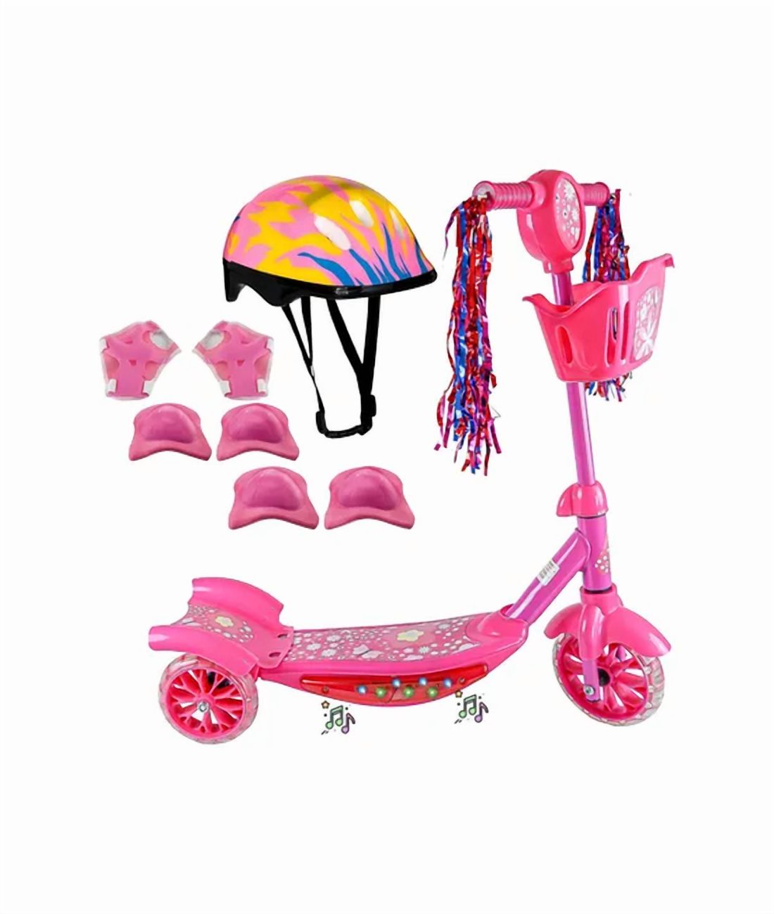 Patinete ruedas niños kit protección casco rosado