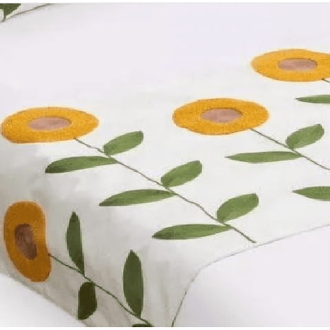 Genérico - Piecera Bordada + 2 Fundas De Cojín Diseño Floral 4 Color Blanco