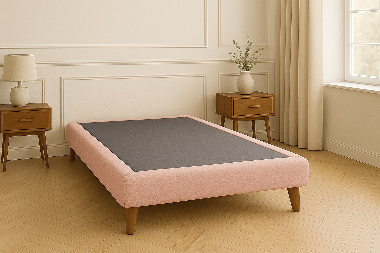 Ethan Desing - Base De Cama 2 Plazas Palo Rosa En Lino
