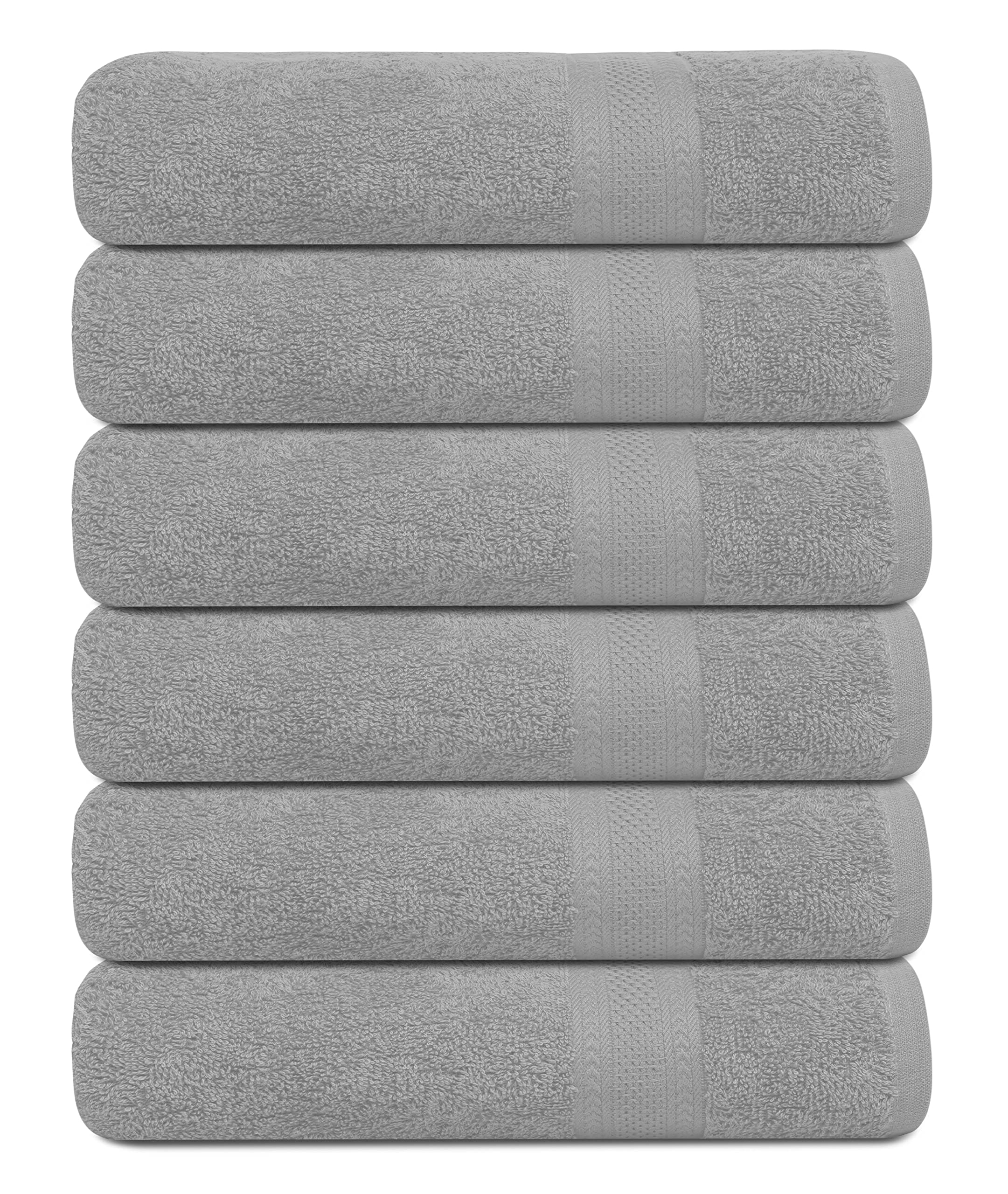 El juego de toallas de baño 100% algodón para baño, soft ring spun, está hecho de hilo de algodón de primera calidad, un material ligero y muy absorbente con un aspecto afelpado y que se pone esponjoso después del primer lavado . uso versátil : ideal para el baño, el salón, la playa, el spa, la piscina, la toalla de baby shower, la sauna, el gimnasio, las manos y la cara, las toallitas de maquillaje, los artículos esenciales de un hotel y dormitorio universitario . comodidad duradera con dobladillos con doble costura y felpa gruesa que hace que nuestra toalla de baño sea ultrasuave. las toallas altamente absorbentes con capacidad de secado rápido, el material naturalmente suave, transpirable y cómodo de los juegos de toallas brindan una experiencia agradable después del baño. lávese las toallas antes de usarlas por primera vez para eliminar cualquier exceso de pelusa que haya quedado del proceso de fabricación y permitir que las fibras de algodón se abran y den a las toallas una mayor capacidad de absorción. - 6 toallas de algodón: juego de 6 toallas de algodón en color gris claro que miden 24 x 50 pulgadas, con dobladillos de doble costura y felpa gruesa que hace que nuestra toalla de baño sea ultrasuave. -: las toallas altamente absorbentes con capacidad de secado rápido, el material naturalmente suave, transpirable y cómodo de los juegos de toallas brindan una experiencia agradable después del baño. -: se trata de toallas multiusos ideales para toallitas de maquillaje, salón de belleza, playa, spa, gimnasio, manos y rostro, y como artículos esenciales para el dormitorio universitario. -: juego de toallas de baño de algodón de primera calidad, hechas de algodón 100% hilado en anillos de alta calidad con material ligero y absorbente. -: lava las toallas antes de usarlas por primera vez para eliminar cualquier exceso de pelusa que haya quedado del proceso de fabricación y permitir que las fibras de algodón se abran y den a las toallas una mejor capacidad de absorción.