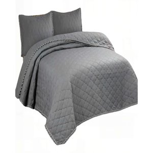 Genérico - Cubrecama Con Detalles De Pompones 2 Plazas Color Gris
