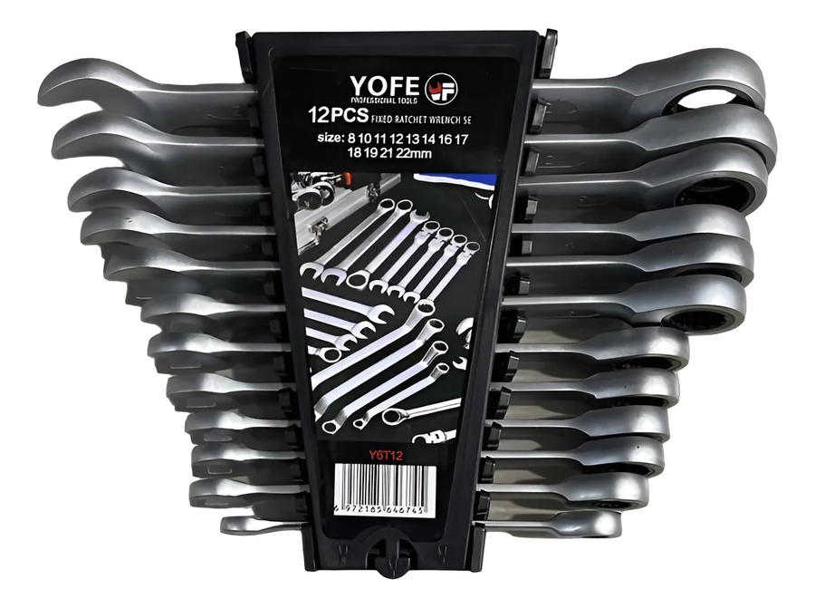 Juego de llaves punta corona chicharra rachet 12 piezas yofe color plateado