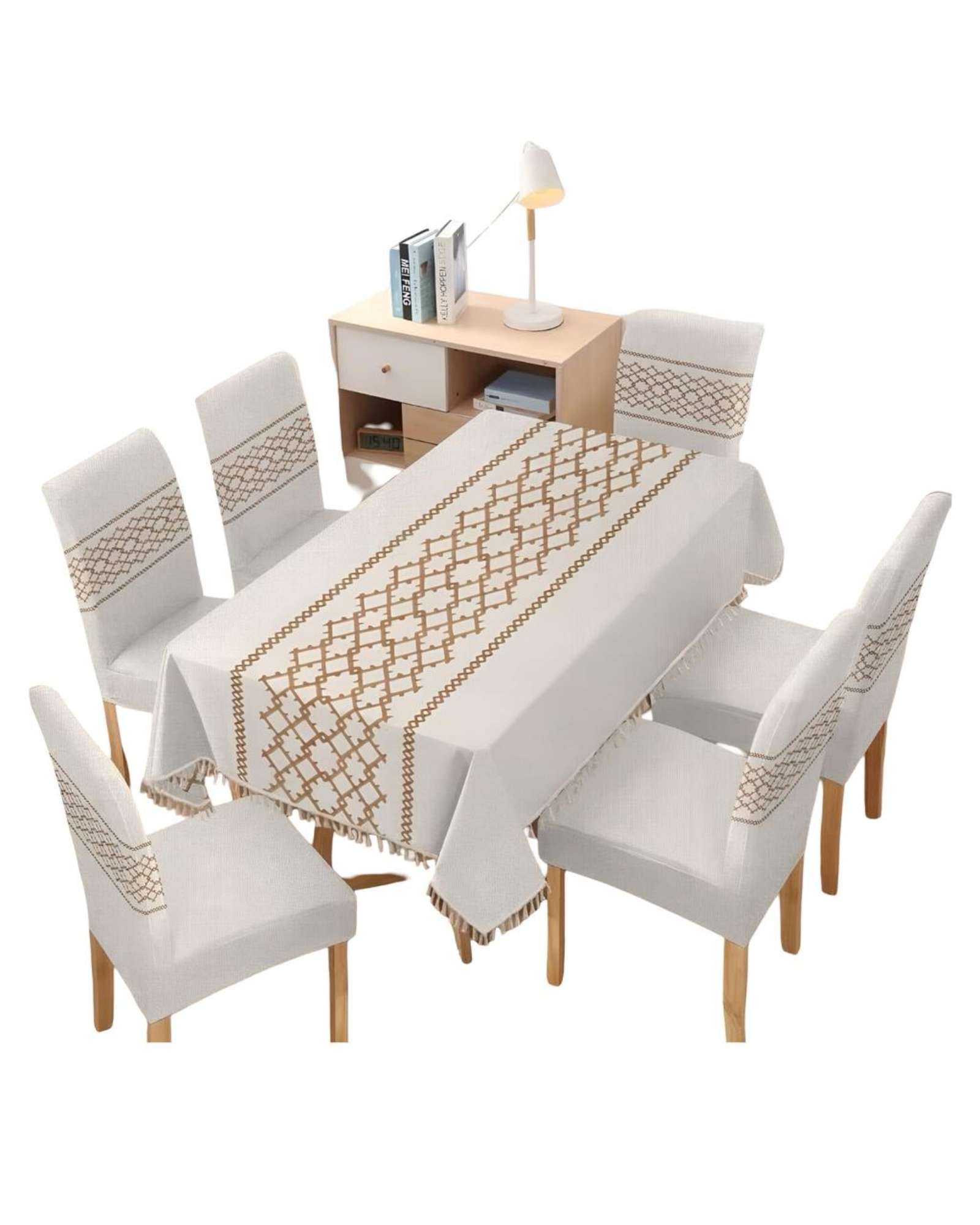 Juego mantel más 6 fundas de silla para comedor 140x220 cm