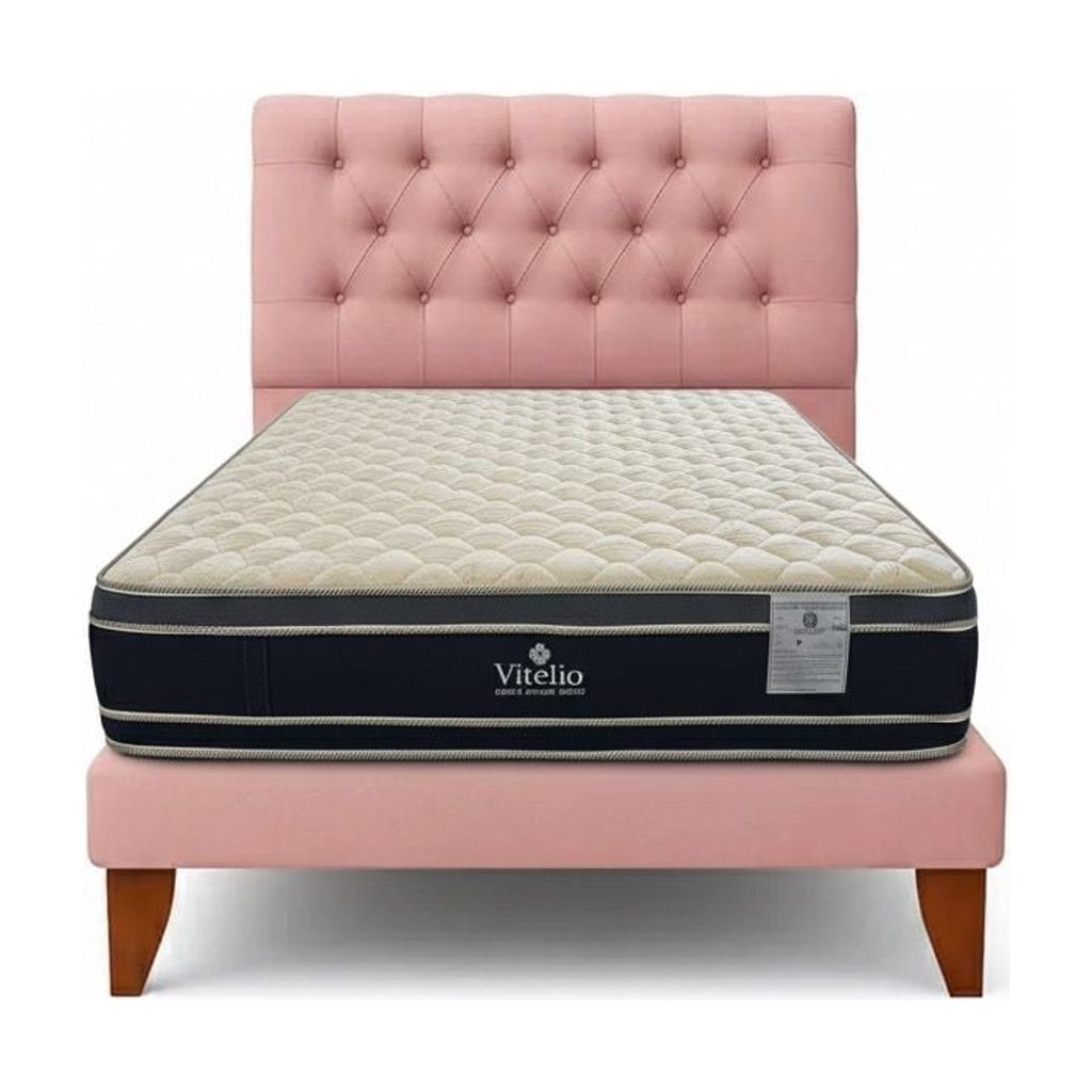 Vitelio - Cama 1.5 Plaza Palo Rosa Capitone + Colchón Ortopedic