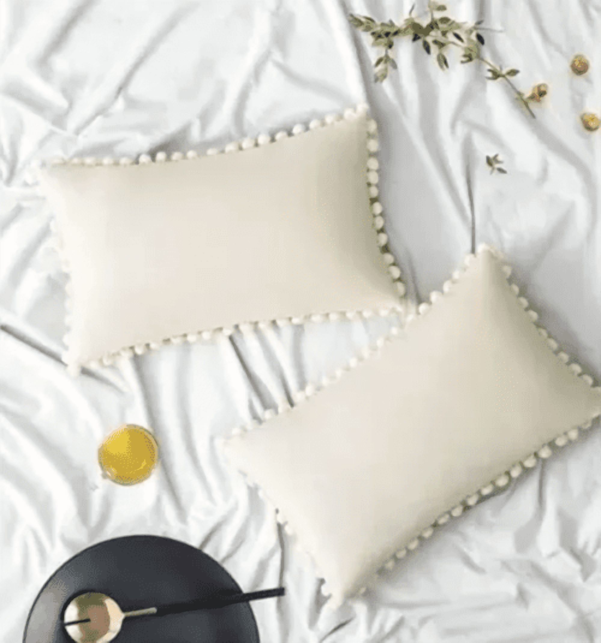Pack de 2 fundas de cojín terciopelo con pompones 30x50 cm blanco