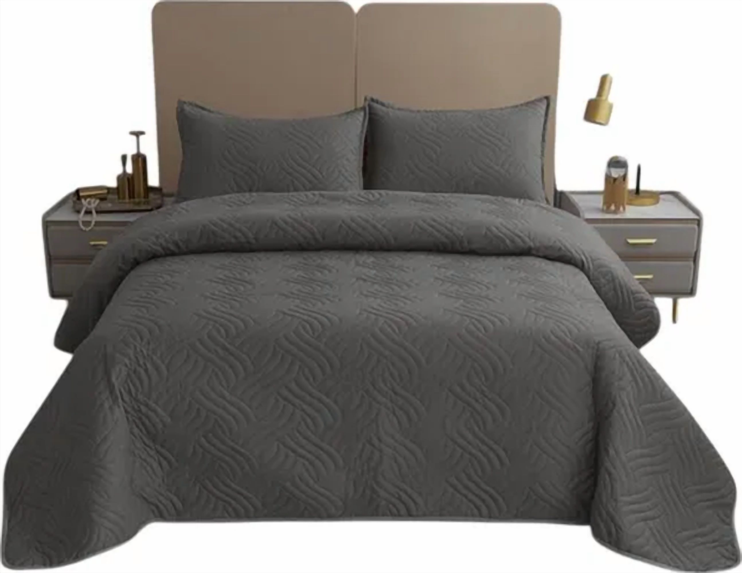 Cubrecama verano king gris oscuro + fundas
