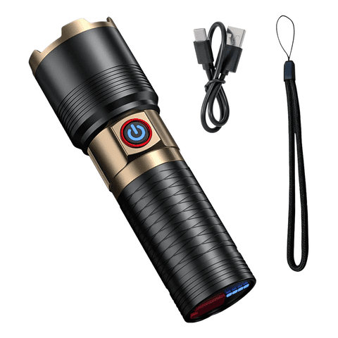 Genérico - Potente Linterna Led P90 De Carga Usb Aleación De Aluminio Linterna Negro Luz Color De La Luz Blanco