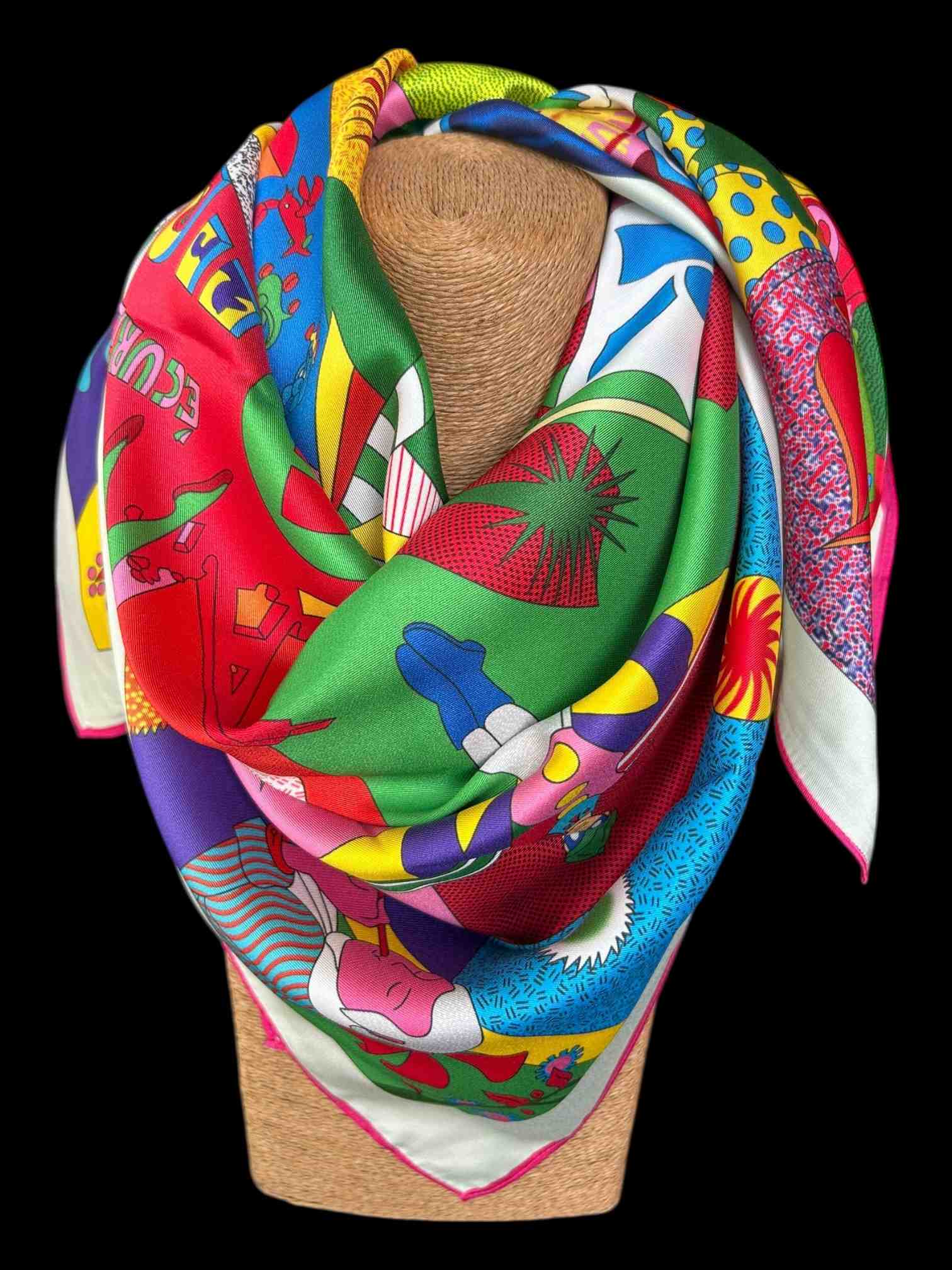 Pañuelo cuadrado, ideal para combinar con blusa blanca y jeans, o derivados del azul o tonos café, donde variadas figuras son protagonistas. medidas: 90x90cm. materialidad: 100% sarga