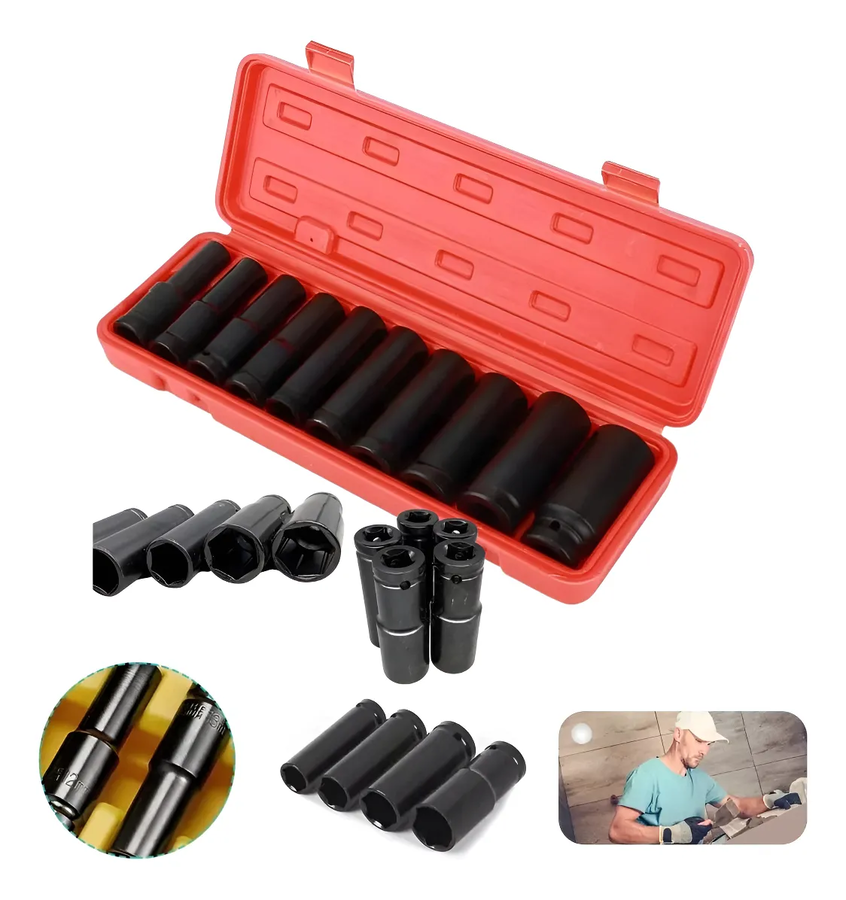 Juego dados impacto largo 1/2 10 pcs uso manual o neumatico