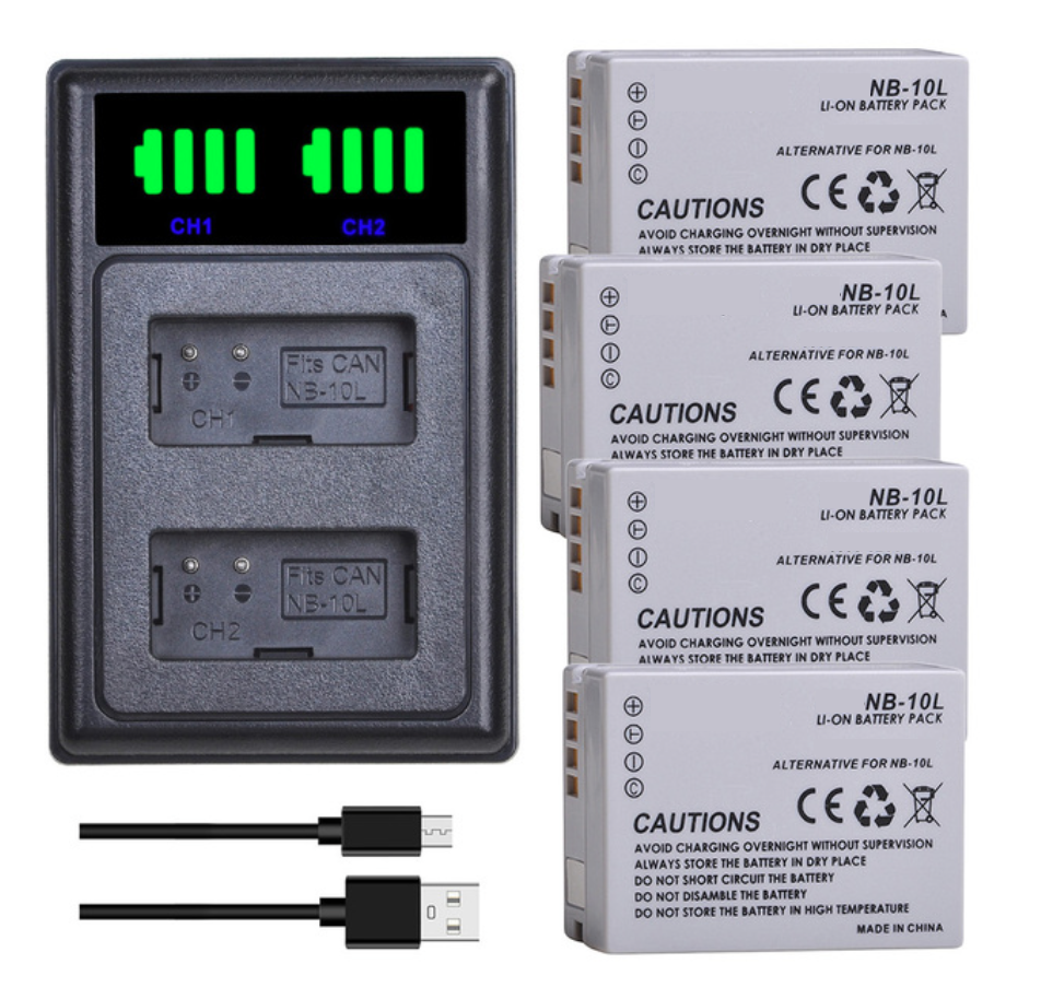 Genérico - 4 Baterías Nb-10L + Cargador Doble Cb-2Lce Alternativo Canon | Lider Electrohogar