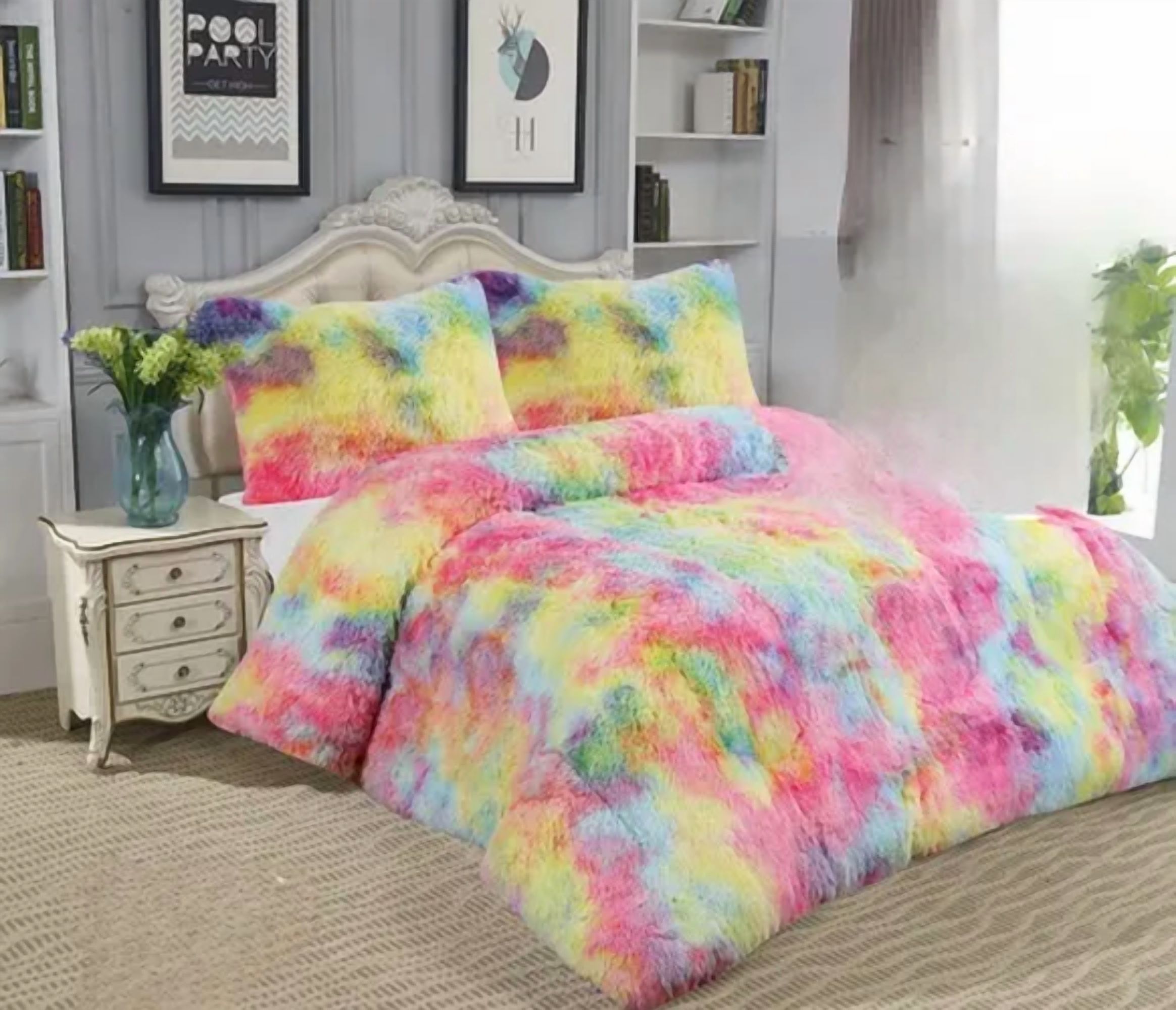 Genérico - Cubrecama Peludo Chiporro 2 Plazas + Fundas