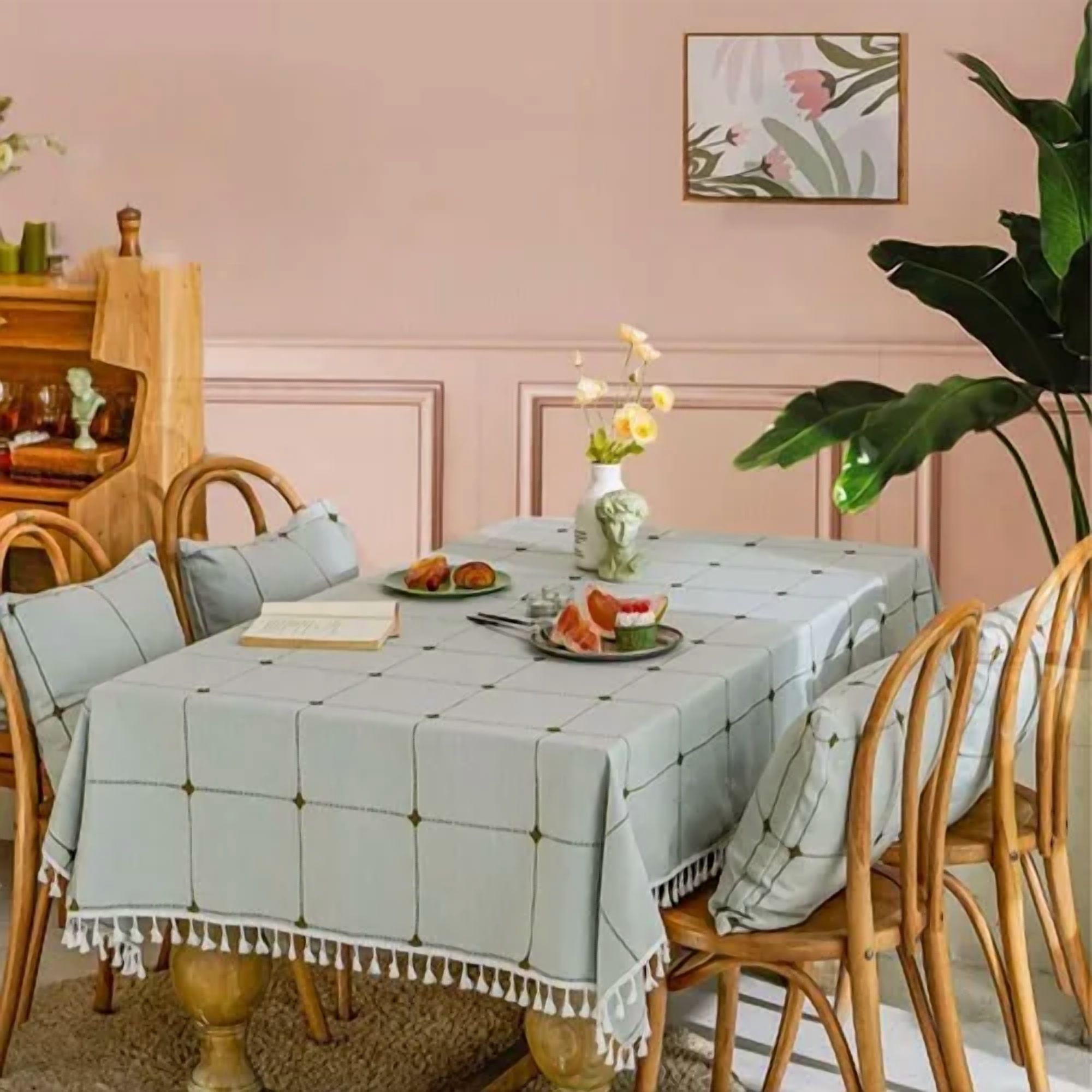 Genérico - Mantel Lino Algodón Impermeable Borla 145X145 | Lider Electrohogar
