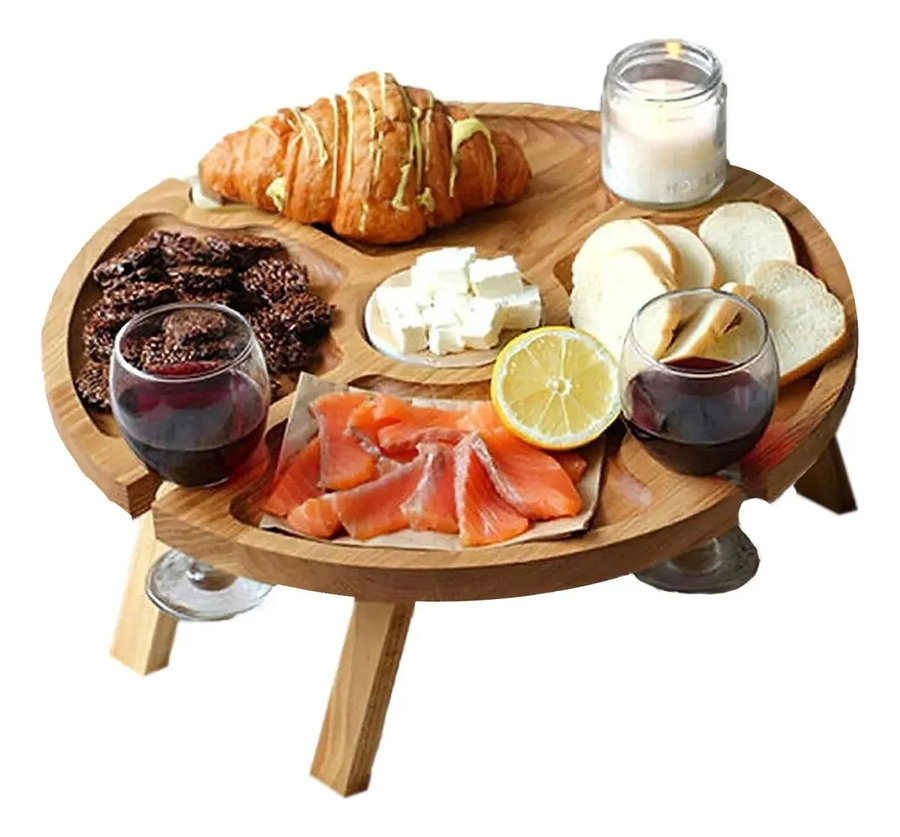 Genérico - Mesa De Picnic Plegable Aire Libre Con Soporte Copas De Vino Geométrico Color Madera | Lider Electrohogar