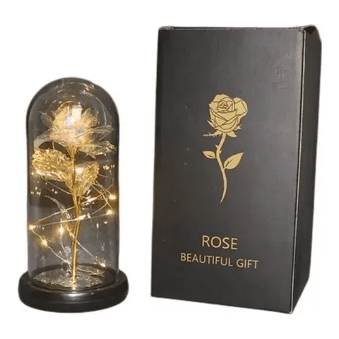 Genérico - Rosa Eterna Tallo Dorado Luces Led