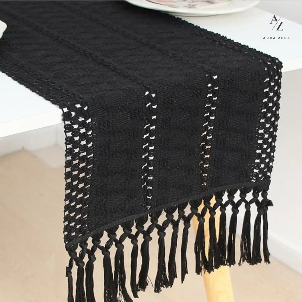 Genérico - Camino Mesa Aura Zeus Boho 180X30 Ónix Negro | Lider Electrohogar