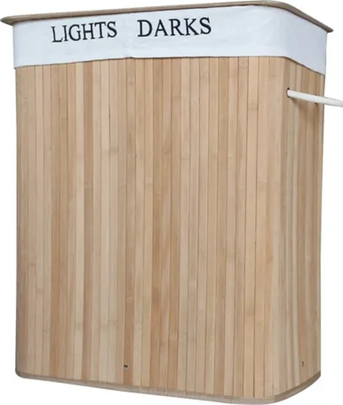 Genérico - Canasto Ropa Sucia Bambú Doble Con Tapa 60L
