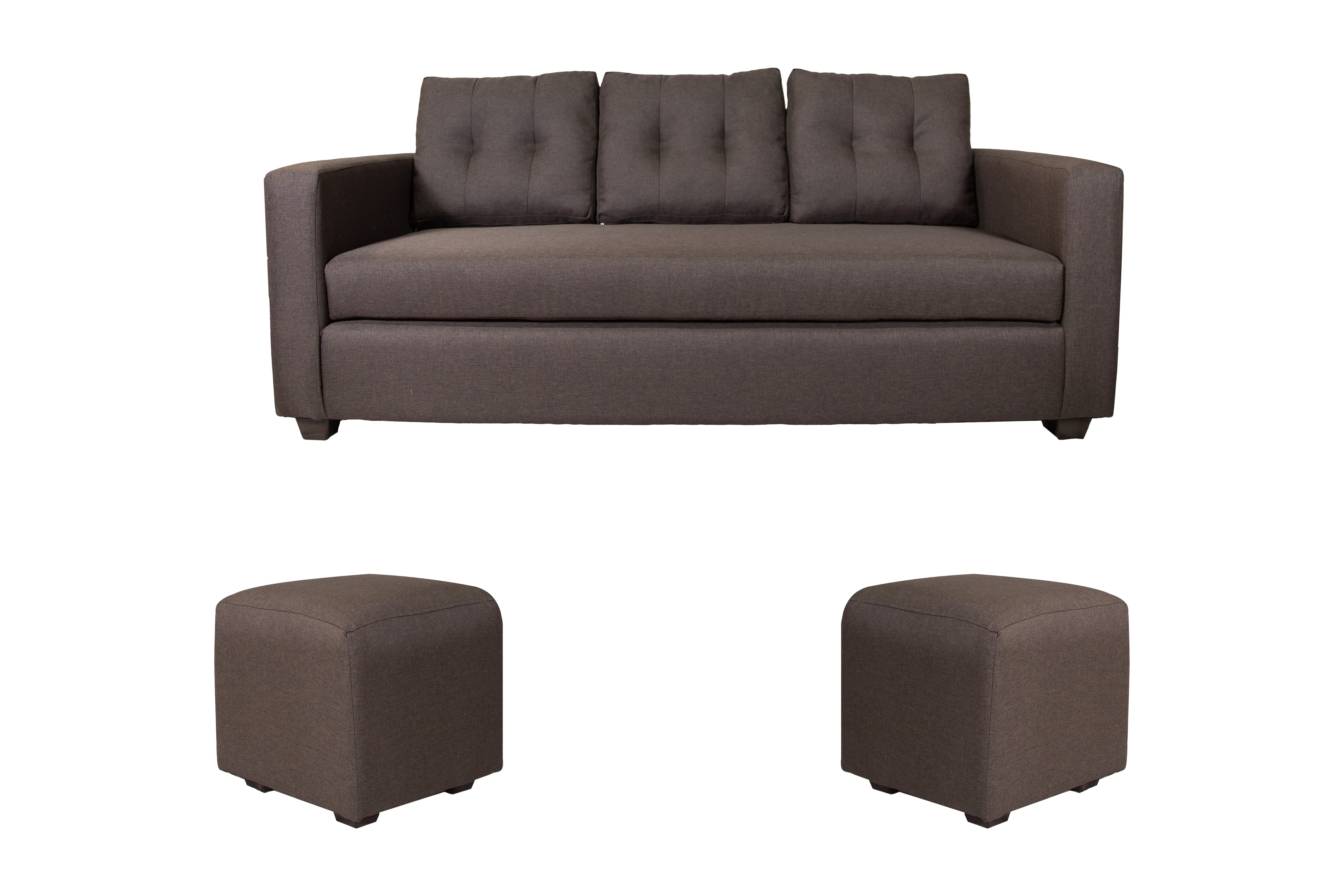 Muebles Cottoni - Sofá 3 Cuerpos Sicilia + 2 Pouf Tela Chocolate