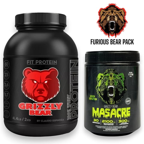 Grizzly Bear - Pack Proteina Whey 2Kg Pan De Pascua + Pre Entreno Masacre - 365Gr Lemon Explotion