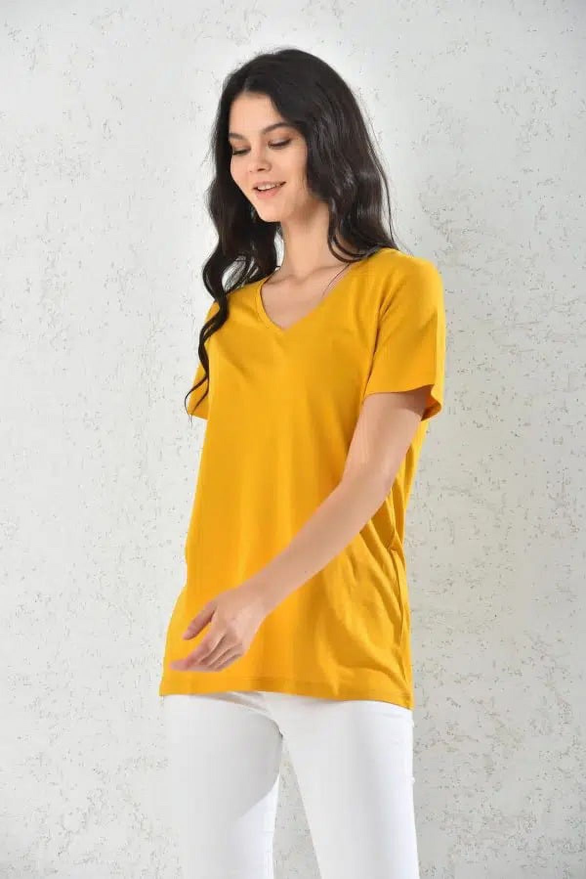 Home Fashion - Polera Mujer Amarillo Manga Corta Cuello V Talla M | Lider Electrohogar
