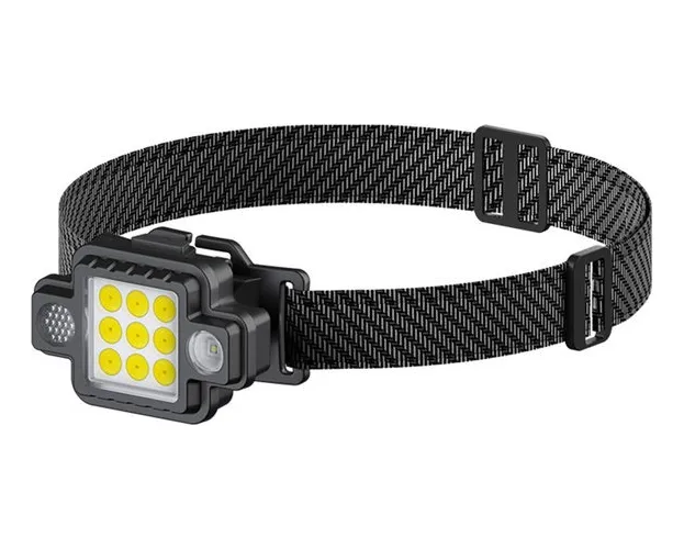 Linterna led cintillo con llavero usb para acampar blanco negro