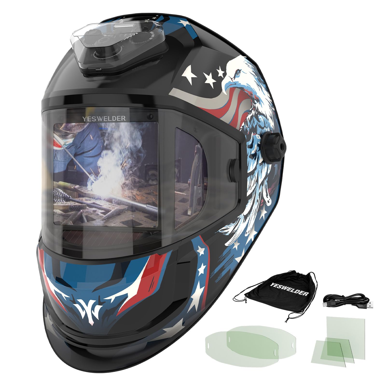 Casco De Soldadura Yeswelder De Oscurecimiento Automático Con 6 Sensores De Arco Tipo C | Lider Electrohogar