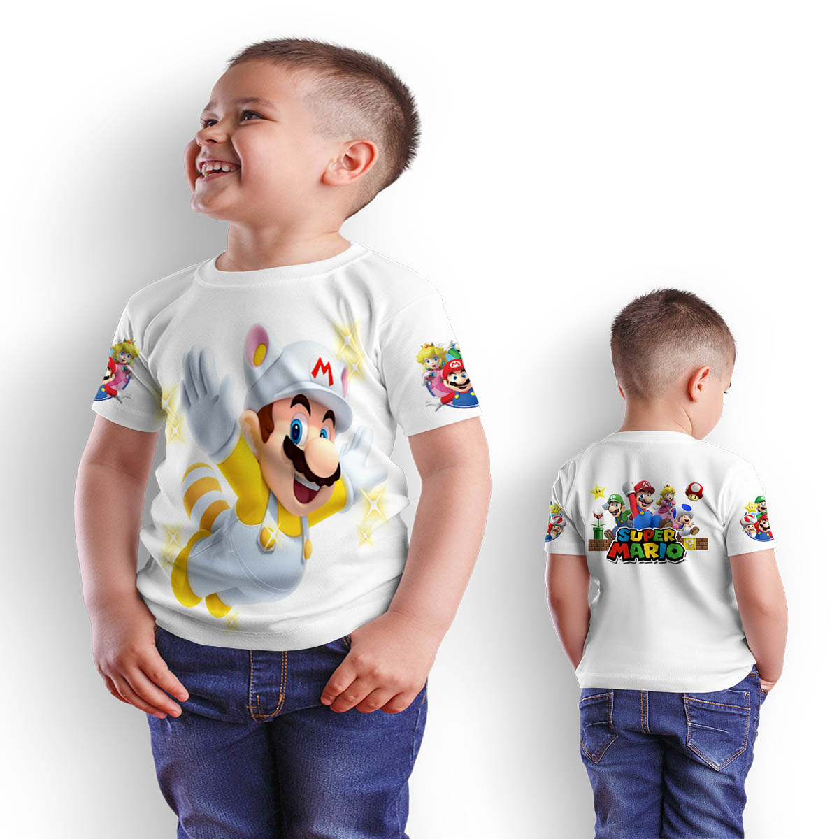 Polera manga corta personalizada en super mario bros.