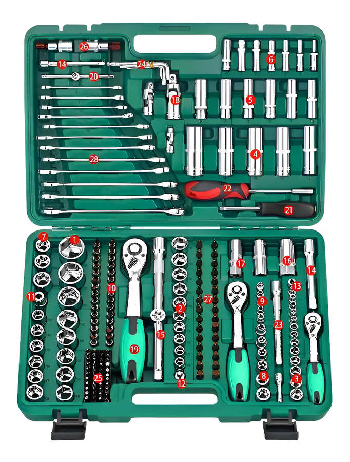 Caja de herramientas dados y llaves 216 piezas