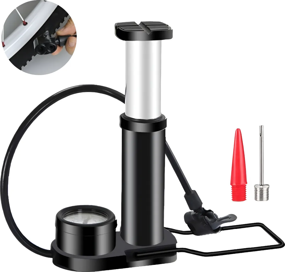 Genérico - Mini Bombin Inflador De Pie Con Manómetro Resistente Negro | Lider Electrohogar