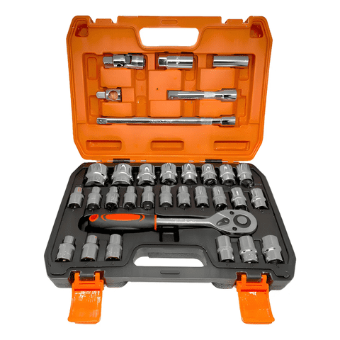 Genérico - Juego De Dados Con Chicharra Y Extension 1/2'' 32Pcs Maleta Color Naranja Negro Plateado | Lider Electrohogar