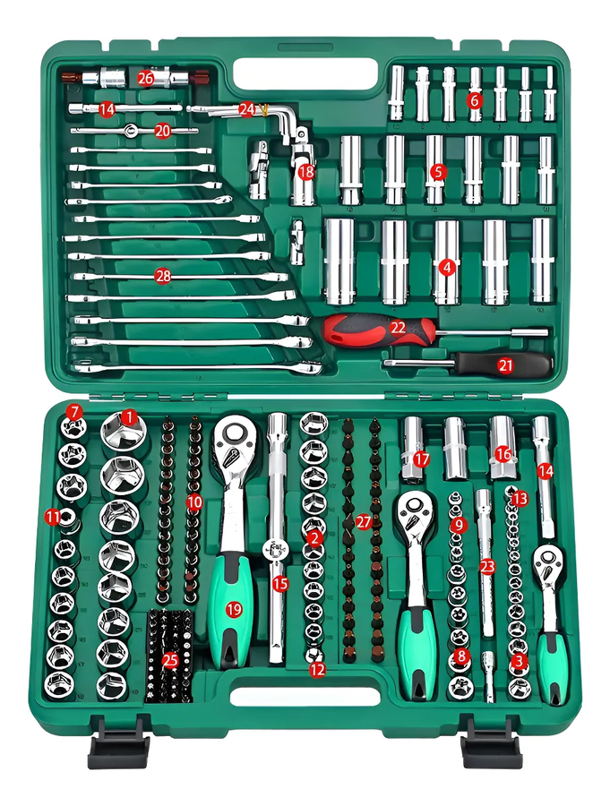 Caja de herramientas dados y llaves 216 piezas verde